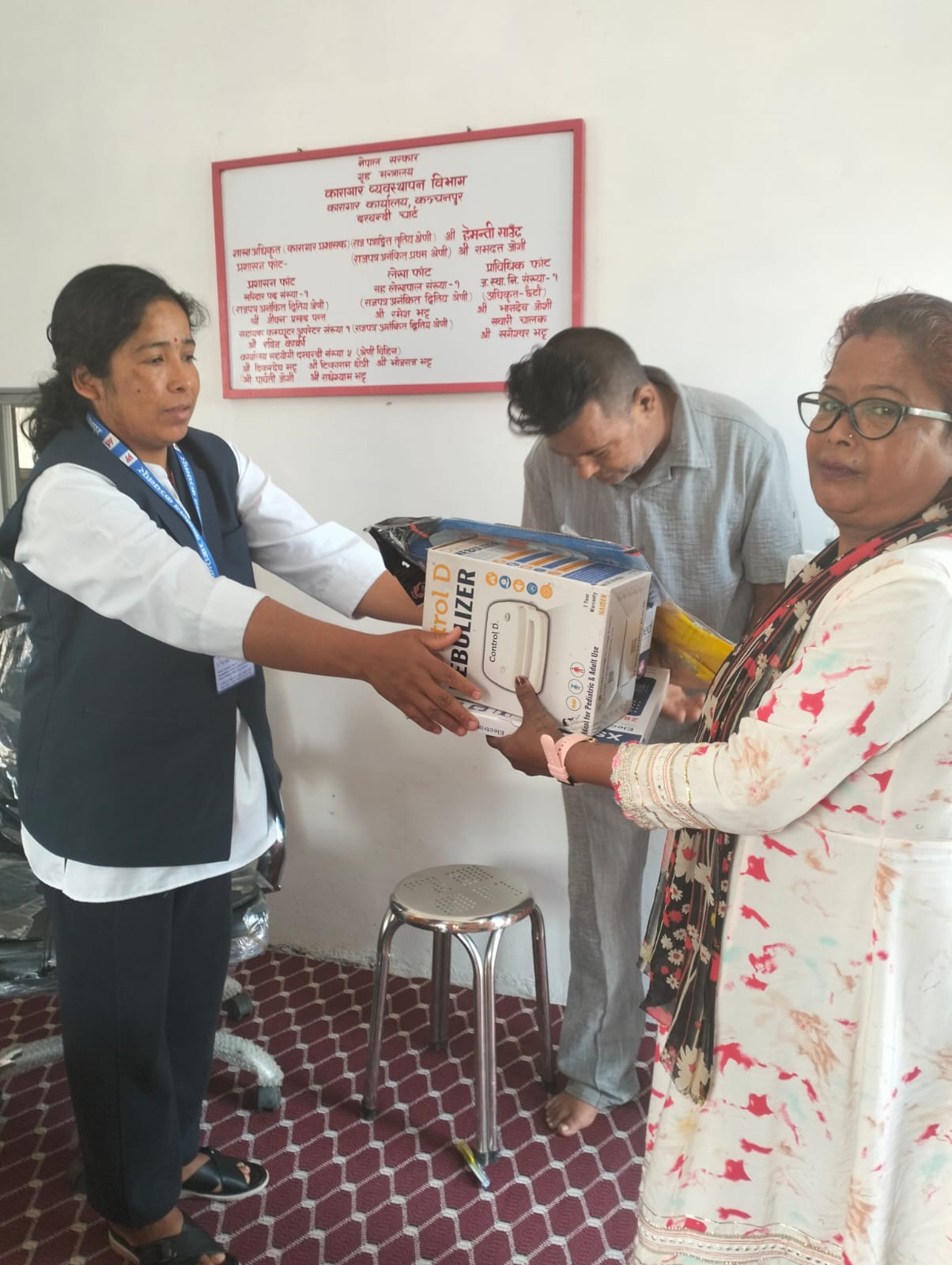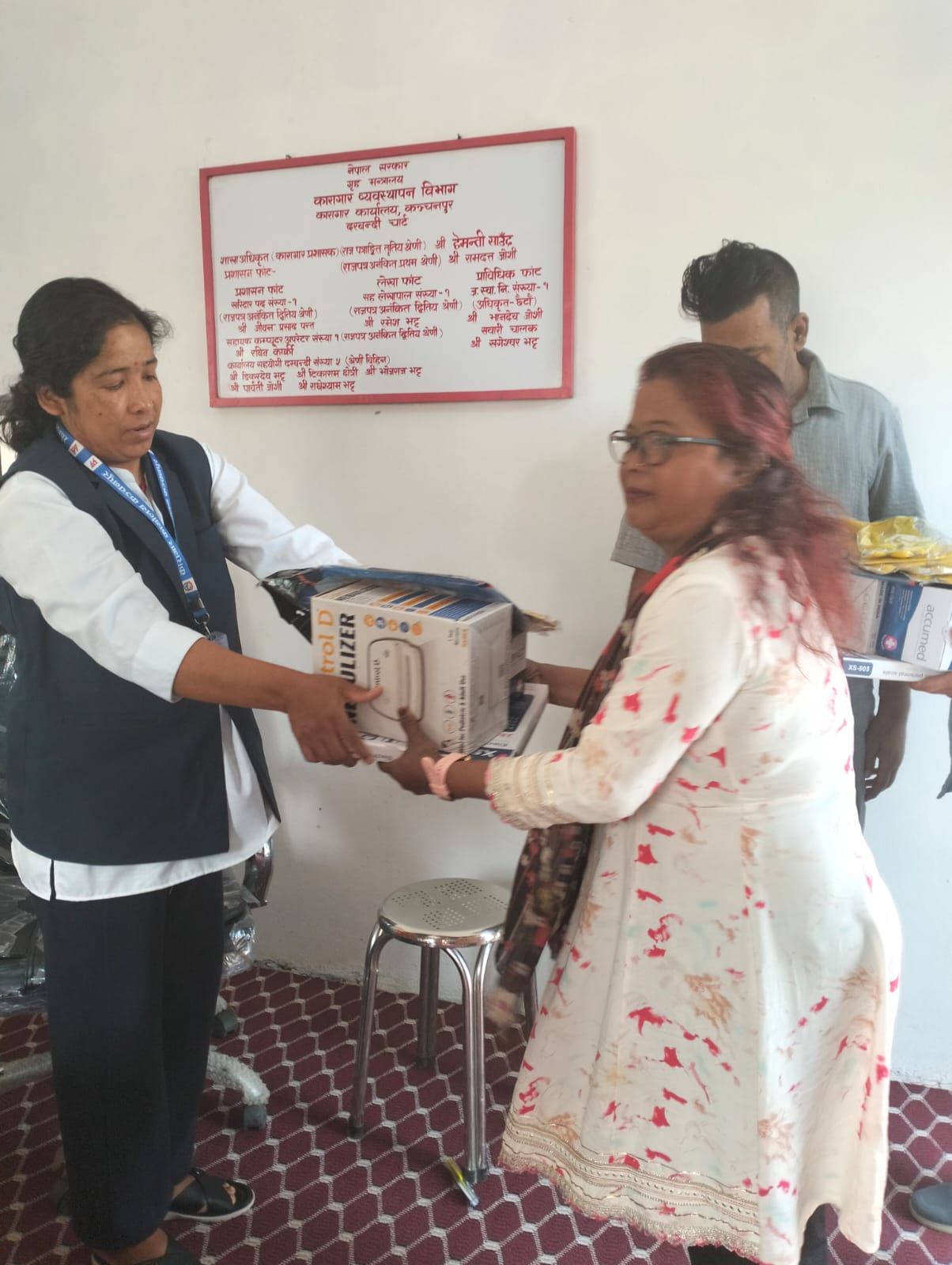 यस कारागार कार्यालयको कैदीबन्दी गृहभित्र रहनु भएका कैदीबन्दीहरूका लागि B.P. Set, Nebulizer सहितका विवध सामग्रीहरू हस्तान्तरण गरिदै।