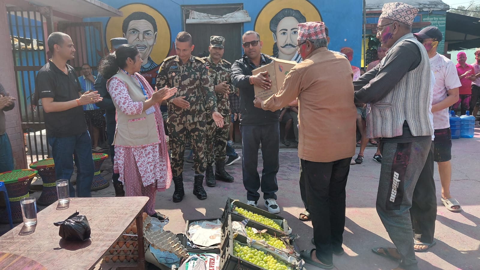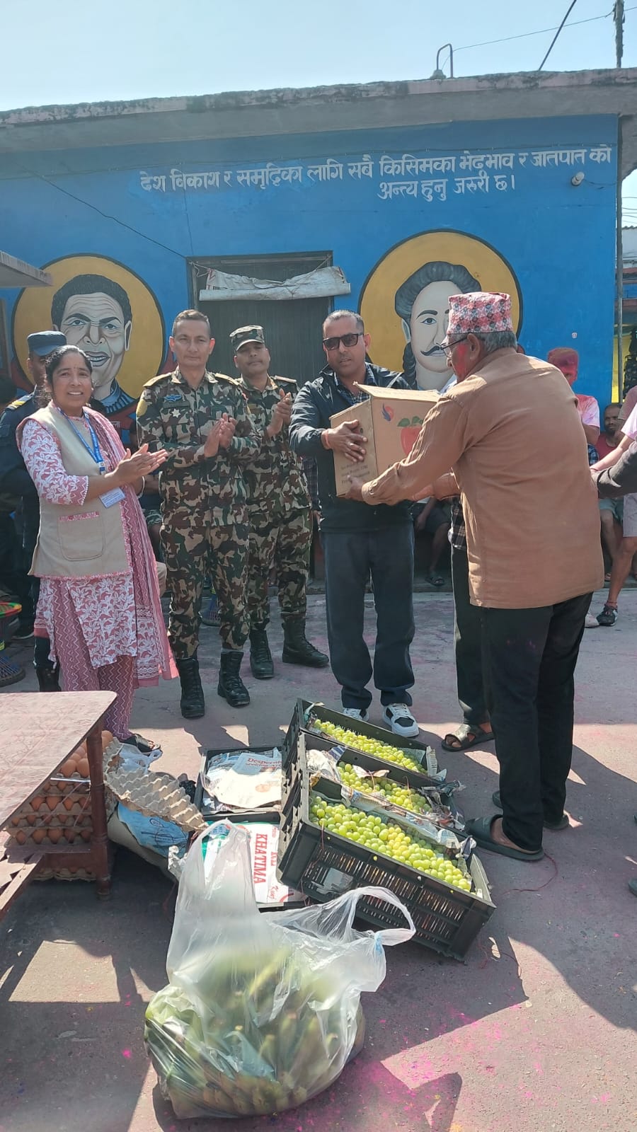 यस कारागार कार्यालयको कैदीबन्दी गृहभित्र रहनु भएका ज्येष्ठ नागरिक, अपाङ्ग तथा अस्वस्थ कैदीबन्दीहरूका लागि पौष्टिक खानेकुरा तथा पौष्टिक सामग्रीहरू वितरण गरिदै।